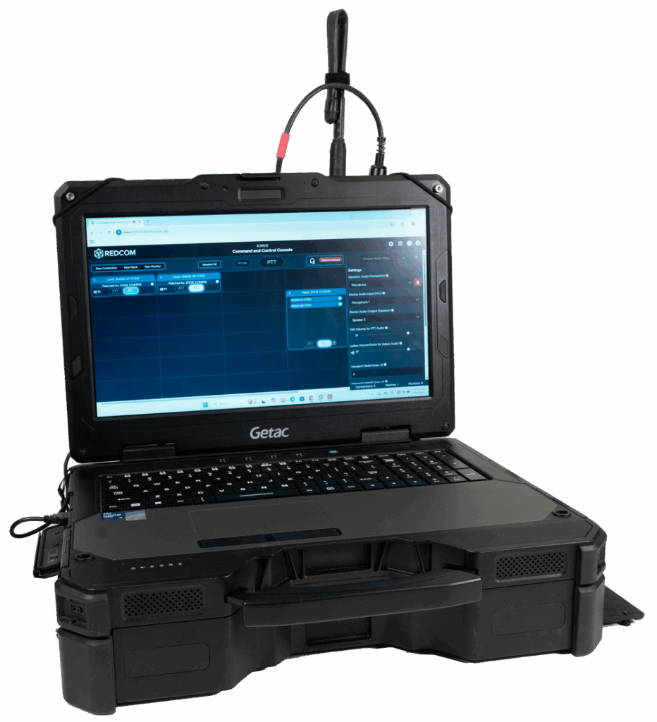 By inserting the REDCOM REDCOM Sigma® XRI-PCIe into a Getac X600 Pro laptop, STRIKE integrates four analog radio ports and native IP radio support. This enables users to connect voice traffic from